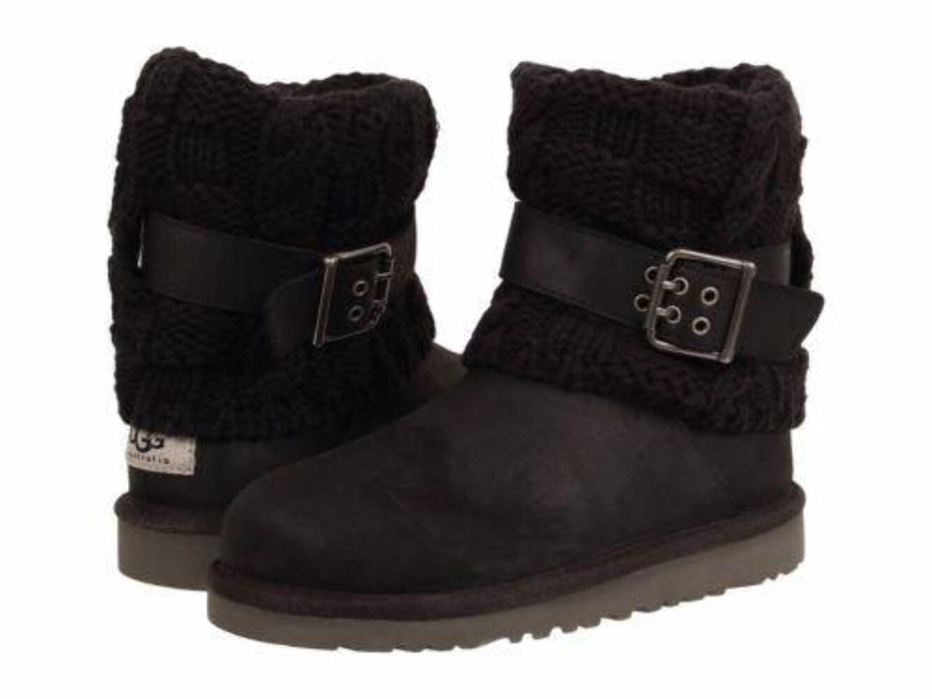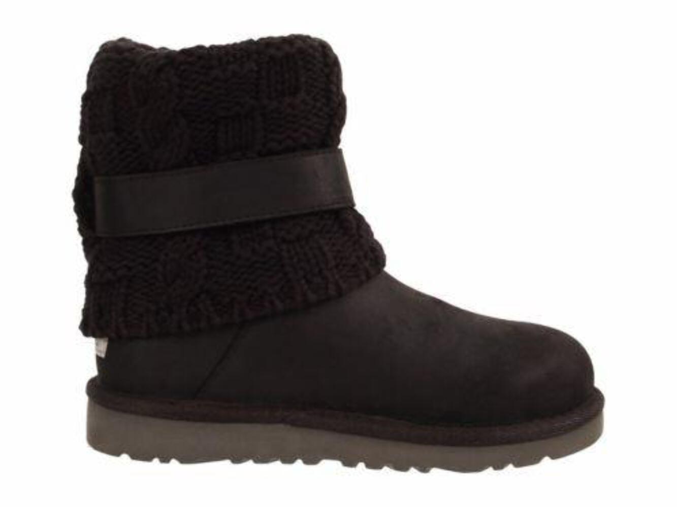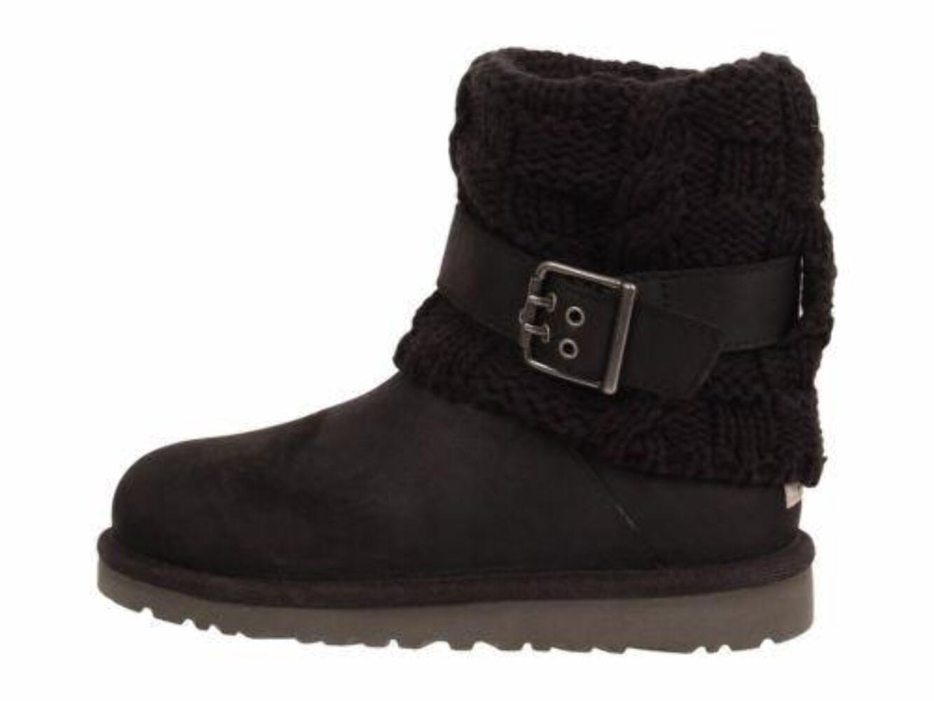 Ugg Australia Cambridge Black Leather Buckle 1008174 Youth Fashion Knit Boot