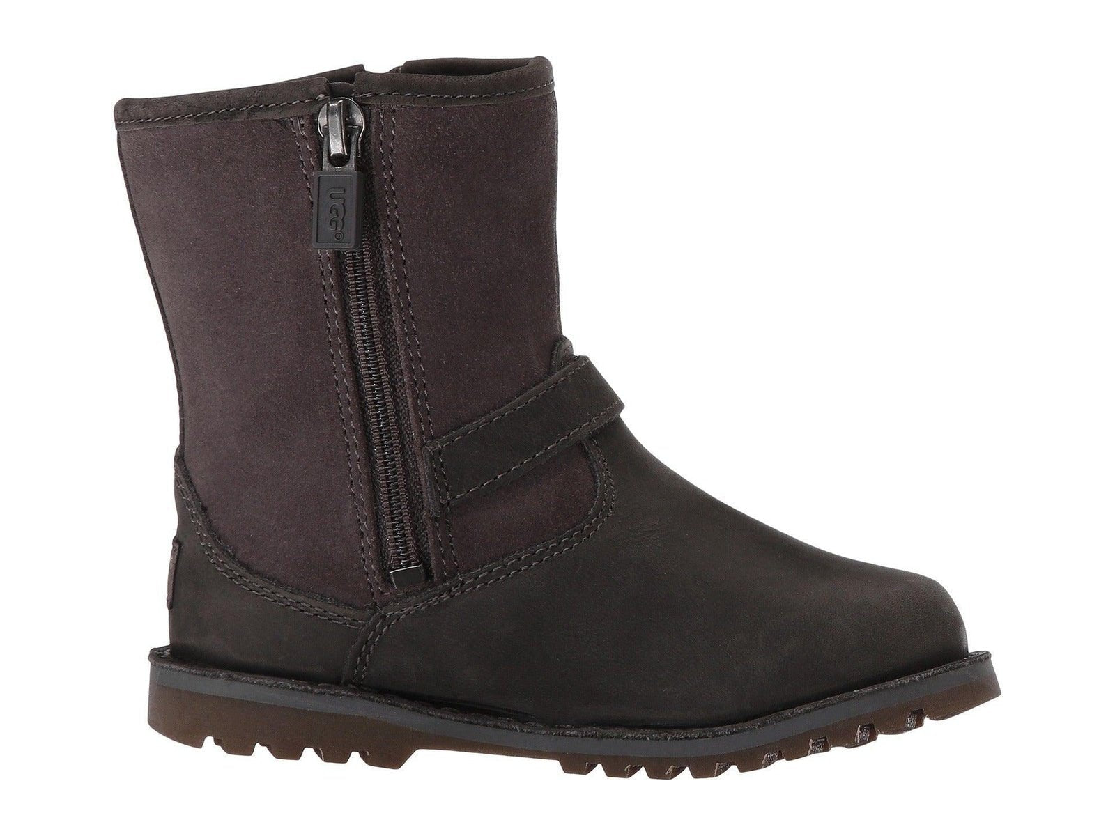 Keep your little one's feet warm and protected with the UGG Harwell boot in versatile Charcoal Gray. Designed specifically for toddlers and infants, this durable boot combines UGG's signature comfort with rugged construction that can handle whatever adventures your child embarks on, from playground fun to winter walks.